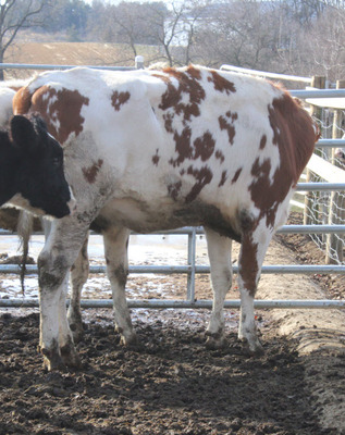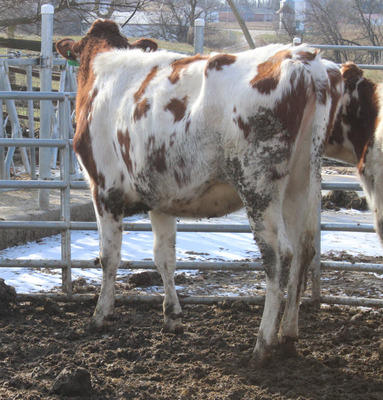 BREED:  HOL SIRE:  94HO923 RIFLE-RED PGS. ROMPEN-RED INFO:  MGS. READY-RED MGD 6-01 305D 24,401 4.0F 3.0P REPRO STATUS:  DUE 2/4/26 TO 7HO16523 MCLOVIN 99% REGISTERED R&W HOLSTEIN BROOKEDALE RIFLE DART-RED DOB:   10/12/23