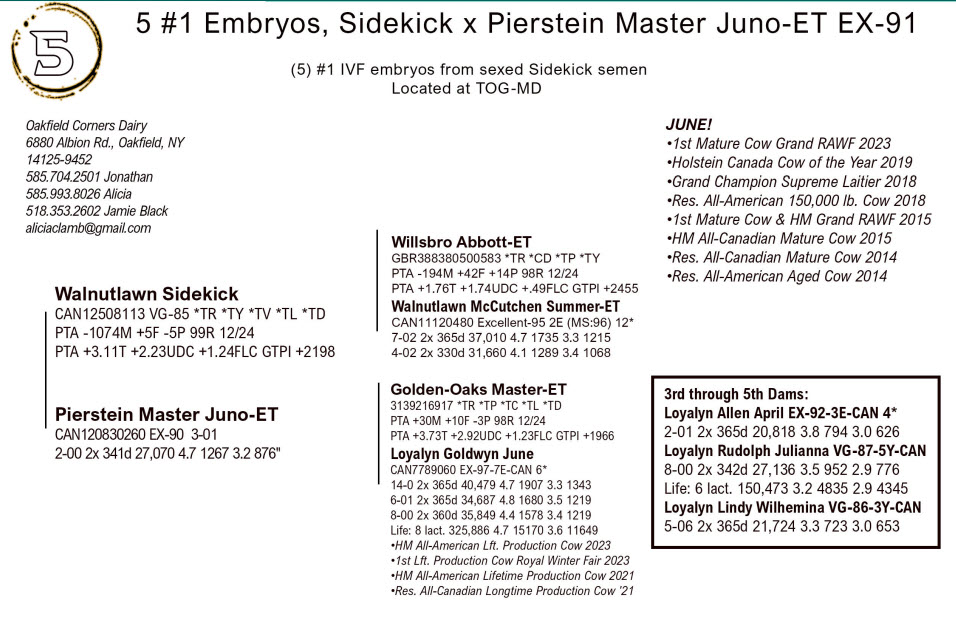 (5) #1 IVF embryos from sexed Sidekick semen