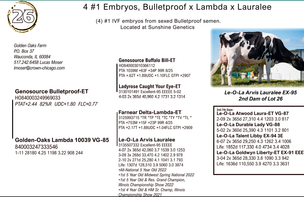 (4) #1 IVF embryos from sexed Bulletproof semen.