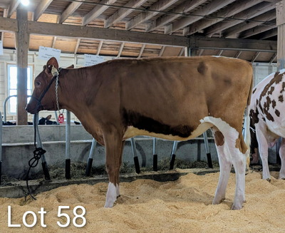The Purple Ribbon Classic 513 East 17th Street , Marshfield WI, 54449 Great offering of calves, open heifers, and bred heifers Contact Agent: Aaron Ray 336-363-4639 Catalog | Terms of Auction Download CATALOG Download UPDATED LOTS Download SALE ORDER Download UPDATES ISSUU CATALOG LINK Catalog | Terms Download CATALOG Download UPDATED LOTS Download SALE ORDER Download UPDATES ISSUU CATALOG LINK All Items (65) Cattle (63) Embryos (2) Categories All Items (65) Cattle (63) Embryos (2) Search Item #: Keyword: Search Catalog Item #: Keyword: 20 items per page 50 items per page 100 items per page Go to page #: 1 , 2 , 3 , 4 #40 – KRULLCREST A MODEL-RED-ET 840003316008621 99%RHA-I Born September 4, 2025 Location: 513 East 17th Street , Marshfield WI, 54449 Contact Agent: Aaron Ray 336-363-4639 More Info / Bid Now Track this Item Sold High Bid: $3,750.00 – #500 #40 – KRULLCREST A MODEL-RED-ET Sold High Bid: $3,750 More Details More Info / Bid Track Item 840003316008621 99%RHA-I Born September 4, 2025 Location: 513 East 17th Street , Marshfield WI, 54449 Contact Agent: Aaron Ray 336-363-4639 #41 – DORSLAND E UNIX HIGH HOPES 840003303042354 Born September 2, 2025 Location: 513 East 17th Street , Marshfield WI, 54449 Contact Agent: Aaron Ray 336-363-4639 More Info / Bid Now Track this Item No Bids Starting at $1,500.00 Login to Bid #41 – DORSLAND E UNIX HIGH HOPES Starting at $1,500.00 Login to Bid More Details More Info / Bid Track Item 840003303042354 Born September 2, 2025 Location: 513 East 17th Street , Marshfield WI, 54449 Contact Agent: Aaron Ray 336-363-4639 #42 – EAST-COLT LEGENDAIRY QUOTE 840003302949844 99%RHA-I Born June 10, 2025 Location: 513 East 17th Street , Marshfield WI, 54449 Contact Agent: Aaron Ray 336-363-4639 More Info / Bid Now Track this Item Sold High Bid: $3,600.00 – #500 #42 – EAST-COLT LEGENDAIRY QUOTE Sold High Bid: $3,600 More Details More Info / Bid Track Item 840003302949844 99%RHA-I Born June 10, 2025 Location: 513 East 17th Street , Marshfield WI, 54449 Contact Agent: Aaron Ray 336-363-4639 #43 – WALK-ERA AVENGER KAEDE 840003281179998 99%RHA-I Born June 2, 2025 Location: 513 East 17th Street , Marshfield WI, 54449 Contact Agent: Aaron Ray 336-363-4639 More Info / Bid Now Track this Item Sold High Bid: $3,100.00 – #500 #43 – WALK-ERA AVENGER KAEDE Sold High Bid: $3,100 More Details More Info / Bid Track Item 840003281179998 99%RHA-I Born June 2, 2025 Location: 513 East 17th Street , Marshfield WI, 54449 Contact Agent: Aaron Ray 336-363-4639 #44 – MS NOVA REBELL RAPUNZEL 840003287912985 99%RHA-I RC Born March 4, 2025 Location: 513 East 17th Street , Marshfield WI, 54449 Contact Agent: Aaron Ray 336-363-4639 More Info / Bid Now Track this Item Sold High Bid: $2,600.00 – #1108 #44 – MS NOVA REBELL RAPUNZEL Sold High Bid: $2,600 More Details More Info / Bid Track Item 840003287912985 99%RHA-I RC Born March 4, 2025 Location: 513 East 17th Street , Marshfield WI, 54449 Contact Agent: Aaron Ray 336-363-4639 #45 – EXCELERANT CREAMSICLE-RED-ET 840003257589310 Born December 20, 2025 Location: 513 East 17th Street , Marshfield WI, 54449 Contact Agent: Aaron Ray 336-363-4639 More Info / Bid Now Track this Item Sold High Bid: $3,100.00 – #1104 #45 – EXCELERANT CREAMSICLE-RED-ET Sold High Bid: $3,100 More Details More Info / Bid Track Item 840003257589310 Born December 20, 2025 Location: 513 East 17th Street , Marshfield WI, 54449 Contact Agent: Aaron Ray 336-363-4639 #46 – TJD-GENETICS ARCH ROYALTY-RED 840003312520088 99%RHA-I Born December 2, 2025 Location: 513 East 17th Street , Marshfield WI, 54449 Contact Agent: Aaron Ray 336-363-4639 More Info / Bid Now Track this Item Sold High Bid: $2,600.00 – #500 #46 – TJD-GENETICS ARCH ROYALTY-RED Sold High Bid: $2,600 More Details More Info / Bid Track Item 840003312520088 99%RHA-I Born December 2, 2025 Location: 513 East 17th Street , Marshfield WI, 54449 Contact Agent: Aaron Ray 336-363-4639 #47 – CRISDHOME HULU RIVALRY-REDL 840003208399342 99%RHA-I Born March 29, 2025 Location: 513 East 17th Street , Marshfield WI, 54449 Contact Agent: Aaron Ray 336-363-4639 More Info / Bid Now Track this Item Sold High Bid: $3,000.00 – #1108 #47 – CRISDHOME HULU RIVALRY-REDL Sold High Bid: $3,000 More Details More Info / Bid Track Item 840003208399342 99%RHA-I Born March 29, 2025 Location: 513 East 17th Street , Marshfield WI, 54449 Contact Agent: Aaron Ray 336-363-4639 #48 – FORWARD STARRY SKY 840003276439879 Born June 1, 2025 Variant red Location: 513 East 17th Street , Marshfield WI, 54449 Contact Agent: Aaron Ray 336-363-4639 More Info / Bid Now Track this Item Sold High Bid: $7,400.00 – #500 #48 – FORWARD STARRY SKY Sold High Bid: $7,400 More Details More Info / Bid Track Item 840003276439879 Born June 1, 2025 Variant red Location: 513 East 17th Street , Marshfield WI, 54449 Contact Agent: Aaron Ray 336-363-4639 #49 – PENDING -RED Pending Born December 1, 2025 Location: 513 East 17th Street , Marshfield WI, 54449 Contact Agent: Aaron Ray 336-363-4639 More Info / Bid Now Track this Item Sold High Bid: $2,800.00 – #500 #49 – PENDING -RED Sold High Bid: $2,800 More Details More Info / Bid Track Item Pending Born December 1, 2025 Location: 513 East 17th Street , Marshfield WI, 54449 Contact Agent: Aaron Ray 336-363-4639 #50 – RIEDEL-RIDGE EXC ACCESS-RED 840003312574497 99%RHA-I Born June 5, 2025 Location: 513 East 17th Street , Marshfield WI, 54449 Contact Agent: Aaron Ray 336-363-4639 More Info / Bid Now Track this Item Sold High Bid: $2,600.00 – #500 #50 – RIEDEL-RIDGE EXC ACCESS-RED Sold High Bid: $2,600 More Details More Info / Bid Track Item 840003312574497 99%RHA-I Born June 5, 2025 Location: 513 East 17th Street , Marshfield WI, 54449 Contact Agent: Aaron Ray 336-363-4639 #51 – THEEWIDEOPEN ARCH MEGARA-ET 840003214444023 Born September 3, 2025 Location: 513 East 17th Street , Marshfield WI, 54449 Contact Agent: Aaron Ray 336-363-4639 More Info / Bid Now Track this Item Sold