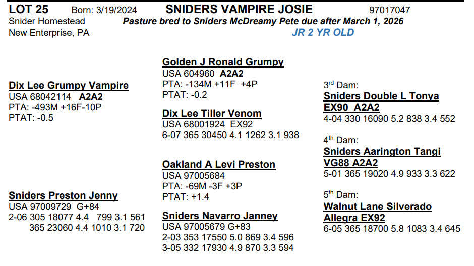 Born: 3/19/2024 Pasture bred to Sniders McDreamy Pete due after March 1, 2026