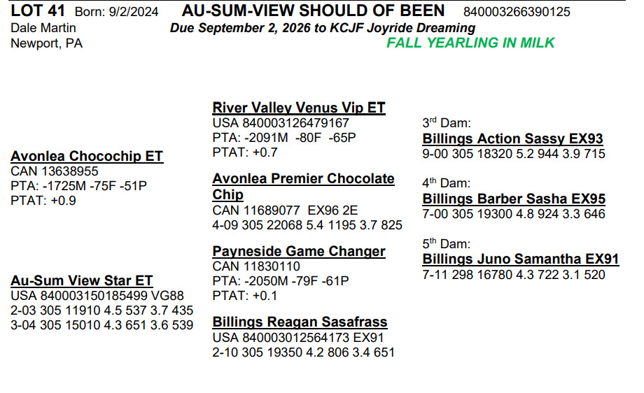 Born: 9/2/2024 Due September 2, 2026 to KCJF Joyride Dreaming