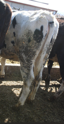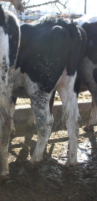 BREED:  HOL INFO:   REPRO:  PREG. 7 MO. TO BLACK ANGUS BULL SIRE:  HORSTDALE LAMBDA CASTLE DOB: 01/27/24