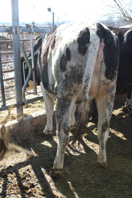 BREED:  HOL INFO:   REPRO:  PREG. 7 MO. TO BLACK ANGUS BULL SIRE:  HORSTDALE LAMBDA CASTLE DOB: 02/04/24