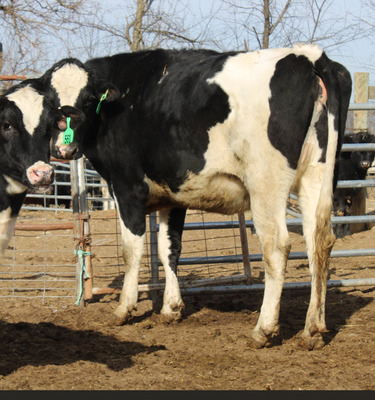 BREED:  HOL INFO:   REPRO:  PREG. 7 MO. TO BLACK ANGUS BULL SIRE:  HORSTDALE LAMBDA CASTLE DOB: 02/06/24