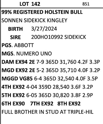 BREED:  HOL INFO:  HENRY STOLTZFUS HERD DAM SELLS AS LOT 28 REPRO:  MILK CALF SIRE:   DOB: 12/27/25