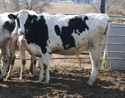 BREED:  HOL INFO:   REPRO:  PREG. 6 1/2 MO. TO BLACK ANGUS BULL SIRE:  HORSTDALE LAMBDA CASTLE DOB: 12/20/23