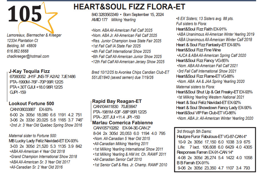 Bred 10/12/25 to Avonlea Chips Candian Club-ET