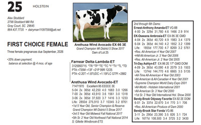 Carolina Classic Calf Sale 1101 W Queen St, Pendleton SC, 29670 Selling All Breeds Contact Agent: Aaron Ray Tompkins 336-363-4639 Catalog | Terms of Auction Download CATALOG Download ADDED LOT Download SALE ORDER AND UPDATES ISSUU CATALOG LINK Catalog | Terms Download CATALOG Download ADDED LOT Download SALE ORDER AND UPDATES ISSUU CATALOG LINK All Items (39) Cattle (38) Embryos (1) Categories All Items (39) Cattle (38) Embryos (1) Search Item #: Keyword: Search Catalog Item #: Keyword: 20 items per page 50 items per page 100 items per page Go to page #: 1 , 2 #22 – HIDDEN SPRINGS REY CARDI B pending Born July 1, 2025 SUMMER YEARLING Location: 1101 W Queen St, Pendleton SC, 29670 Contact Agent: Aaron Ray Tompkins 336-363-4639 More Info / Bid Now Track this Item Sold High Bid: $2,400.00 – #1018 #22 – HIDDEN SPRINGS REY CARDI B Sold High Bid: $2,400 More Details More Info / Bid Track Item pending Born July 1, 2025 SUMMER YEARLING Location: 1101 W Queen St, Pendleton SC, 29670 Contact Agent: Aaron Ray Tompkins 336-363-4639 #23 – HIDDEN-SPRINGS REAGAN'S JOURNY 840 3221475115 Born July 8, 2023 Tattoo 105 JUNIOR THREE YEAR OLD Very Good-85 Fresh: January 15, 2026 Location: 1101 W Queen St, Pendleton SC, 29670 Contact Agent: Aaron Ray Tompkins 336-363-4639 More Info / Bid Now Track this Item Sold High Bid: $4,000.00 – #6 #23 – HIDDEN-SPRINGS REAGAN'S JOURNY Sold High Bid: $4,000 More Details More Info / Bid Track Item 840 3221475115 Born July 8, 2023 Tattoo 105 JUNIOR THREE YEAR OLD Very Good-85 Fresh: January 15, 2026 Location: 1101 W Queen St, Pendleton SC, 29670 Contact Agent: Aaron Ray Tompkins 336-363-4639 #24 – GOLDEN-OAKS -ET 840 330728056 Born December 1, 2025 WINTER CALF Location: 1101 W Queen St, Pendleton SC, 29670 Contact Agent: Aaron Ray Tompkins 336-363-4639 More Info / Bid Now Track this Item Sold High Bid: $4,200.00 – #6 #24 – GOLDEN-OAKS -ET Sold High Bid: $4,200 More Details More Info / Bid Track Item 840 330728056 Born December 1, 2025 WINTER CALF Location: 1101 W Queen St, Pendleton SC, 29670 Contact Agent: Aaron Ray Tompkins 336-363-4639 #25 – DELTA LAMBDA X AVOCADO CHOICE FIRST CHOICE FEMALE Three female pregnances due September, 2026 35% down payment; balance at selection @ 4 mos. of age Location: 1101 W Queen St, Pendleton SC, 29670 Contact Agent: Aaron Ray Tompkins 336-363-4639 More Info / Bid Now Track this Item Sold High Bid: $4,900.00 – #6 #25 – DELTA LAMBDA X AVOCADO CHOICE Sold High Bid: $4,900 More Details More Info / Bid Track Item FIRST CHOICE FEMALE Three female pregnances due September, 2026 35% down payment; balance at selection @ 4 mos. of age Location: 1101 W Queen St, Pendleton SC, 29670 Contact Agent: Aaron Ray Tompkins 336-363-4639 #26 – T-TRIPLE-T PRISTINE *RC 840 3278139205 Born June 3, 2024 H.N. 402 SUMMER JUNIOR TWO YEAR OLD Bred 8/31/25 to Farnear Aircraft-ET *RC 551HO4611 Location: 1101 W Queen St, Pendleton SC, 29670 Contact Agent: Aaron Ray Tompkins 336-363-4639 More Info / Bid Now Track this Item Sold High Bid: $3,400.00 – #6 #26 – T-TRIPLE-T PRISTINE *RC Sold High Bid: $3,400 More Details More Info / Bid Track Item 840 3278139205 Born June 3, 2024 H.N. 402 SUMMER JUNIOR TWO YEAR OLD Bred 8/31/25 to Farnear Aircraft-ET *RC 551HO4611 Location: 1101 W Queen St, Pendleton SC, 29670 Contact Agent: Aaron Ray Tompkins 336-363-4639 #27 – LINK T RADIANT-RED-ET 840 3266227460 Born June 3, 2025 H.N. 1190 SUMMER YEARLING GPTA +2.36T +1.48UDC +1.93FLC 80R 12/25 A1/A2 AA Location: 1101 W Queen St, Pendleton SC, 29670 Contact Agent: Aaron Ray Tompkins 336-363-4639 More Info / Bid Now Track this Item Sold High Bid: $2,300.00 – #6 #27 – LINK T RADIANT-RED-ET Sold High Bid: $2,300 More Details More Info / Bid Track Item 840 3266227460 Born June 3, 2025 H.N. 1190 SUMMER YEARLING GPTA +2.36T +1.48UDC +1.93FLC 80R 12/25 A1/A2 AA Location: 1101 W Queen St, Pendleton SC, 29670 Contact Agent: Aaron Ray Tompkins 336-363-4639 #28 – SWEET-HEAT LEWIS PENELOPE-ET 840 3319404818 Born October 18, 2025 H.N. 3337 FALL CALF Location: 1101 W Queen St, Pendleton SC, 29670 Contact Agent: Aaron Ray Tompkins 336-363-4639 More Info / Bid Now Track this Item Sold High Bid: $2,550.00 – #6 #28 – SWEET-HEAT LEWIS PENELOPE-ET Sold High Bid: $2,550 More Details More Info / Bid Track Item 840 3319404818 Born October 18, 2025 H.N. 3337 FALL CALF Location: 1101 W Queen St, Pendleton SC, 29670 Contact Agent: Aaron Ray Tompkins 336-363-4639 #29 – R-E-W MASTER LAYLA-ET 840 3319404819 Born October 19, 2025 H.N. 3338 FALL CALF Location: 1101 W Queen St, Pendleton SC, 29670 Contact Agent: Aaron Ray Tompkins 336-363-4639 More Info / Bid Now Track this Item Sold High Bid: $2,800.00 – #6 #29 – R-E-W MASTER LAYLA-ET Sold High Bid: $2,800 More Details More Info / Bid Track Item 840 3319404819 Born October 19, 2025 H.N. 3338 FALL CALF Location: 1101 W Queen St, Pendleton SC, 29670 Contact Agent: Aaron Ray Tompkins 336-363-4639 #30 – OAKFIELD CRUSHABL STEREO-ET 840 3300022487 Born March 8, 2025 H.N. 8156 SPRING YEARLING GPTA +2.45T +1.30UDC +.50FLC 81R 12/25 Location: 1101 W Queen St, Pendleton SC, 29670 Contact Agent: Aaron Ray Tompkins 336-363-4639 More Info / Bid Now Track this Item Sold High Bid: $2,300.00 – #6 #30 – OAKFIELD CRUSHABL STEREO-ET Sold High Bid: $2,300 More Details More Info / Bid Track Item 840 3300022487 Born March 8, 2025 H.N. 8156 SPRING YEARLING GPTA +2.45T +1.30UDC +.50FLC 81R 12/25 Location: 1101 W Queen St, Pendleton SC, 29670 Contact Agent: Aaron Ray Tompkins 336-363-4639 #31 – OAKFIELD CRSHABLE SAVANT-ET 840 3300022474 Born March 3, 2025 H.N. 8143 SPRING YEARLING GPTA +2.23T +1.38UDC +.80FLC 81R 12/25 Location: 1101 W Queen St, Pendleton SC, 29670 Contact Agent: Aaron Ray Tompkins 336-363-4639 More Info / Bid Now Track this Item Sold High Bid: $3,600.00 – #6 #31 – OAKFIELD CRSHABLE SAVANT-ET Sold High Bid: $3,600 More Details More Info / Bid Track Item 840 3300022474 Born March 3, 2025 H.N. 8143 SPRING YEARLING GPTA +2