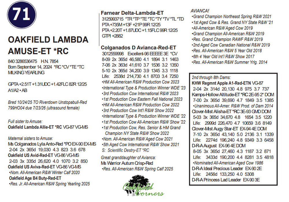 Bred 10/24/25 TO Riverdown Unstopabull-Red