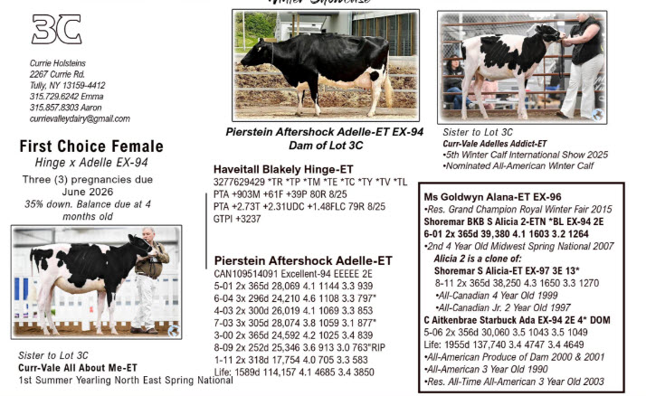 Currie Holsteins Winter Showcase Tag Sale