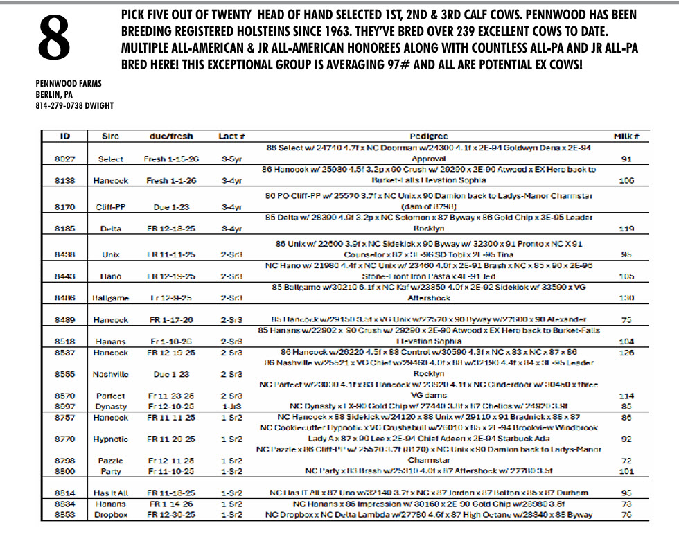 2026 PA Holstein Convention Sale