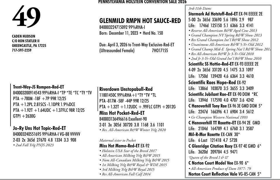 2026 PA Holstein Convention Sale