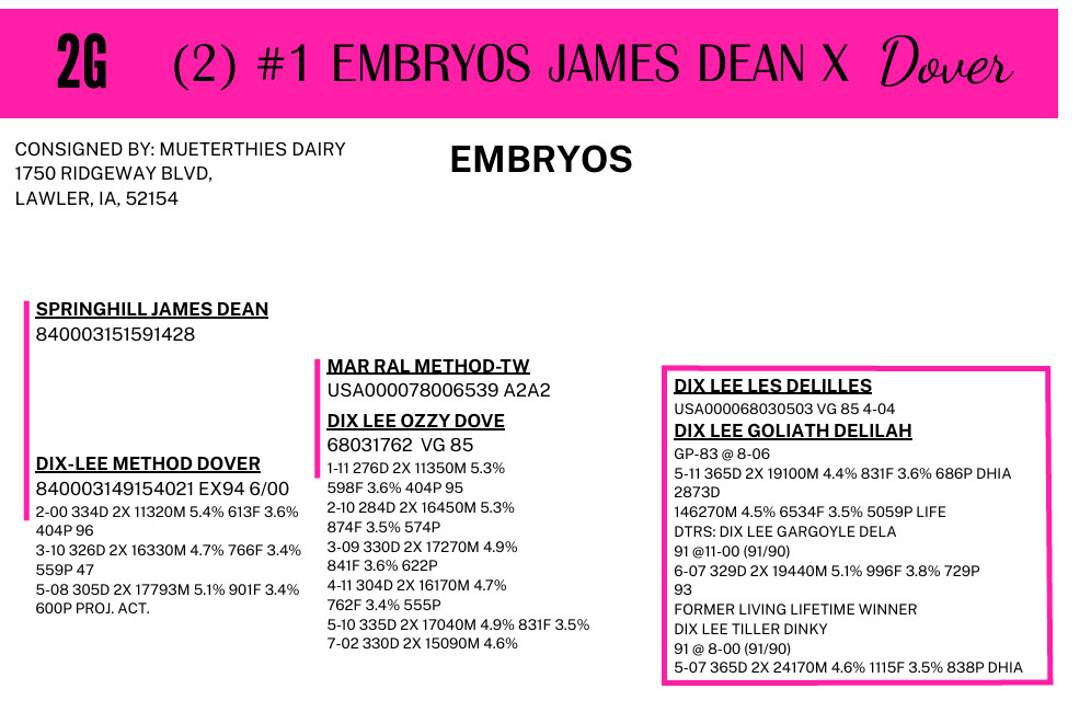 -Selling price is per Embryo or straw of semen
