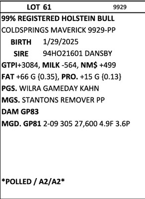 BRUBACKER'S FEBUARY Monthly Production Sale