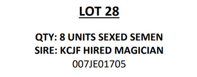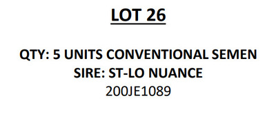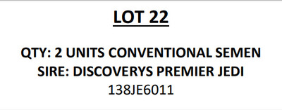 -Selling price is per Embryo -Buyer is responsible for all costs of shipping expenses. This auction will utilize an auto-extend, soft closing. With this feature, the bidding will close on ALL lots at the same time. Bidding will start to close at 3:00 pm CST if a lot receive a bid in the last minute of bidding, they will extend bidding on ALL lots for an additional 2 minutes. Once 1 minute has lapsed without any bidding activity, then the lots will close.