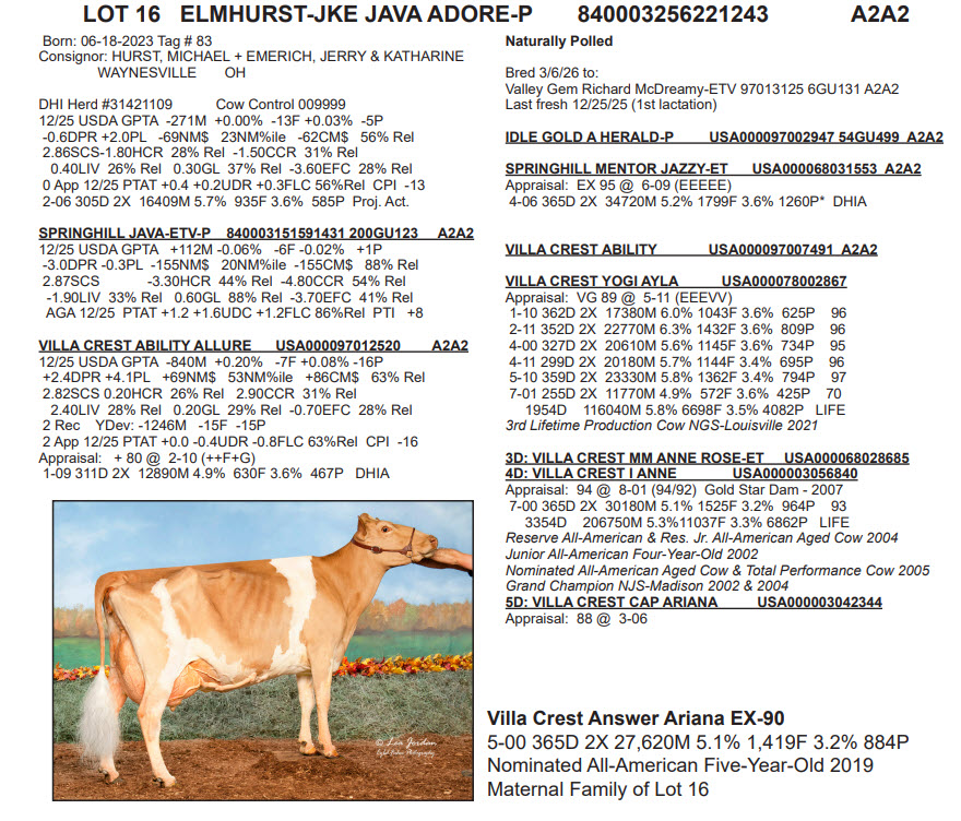 Last fresh 12/25/25 (1st lactation)