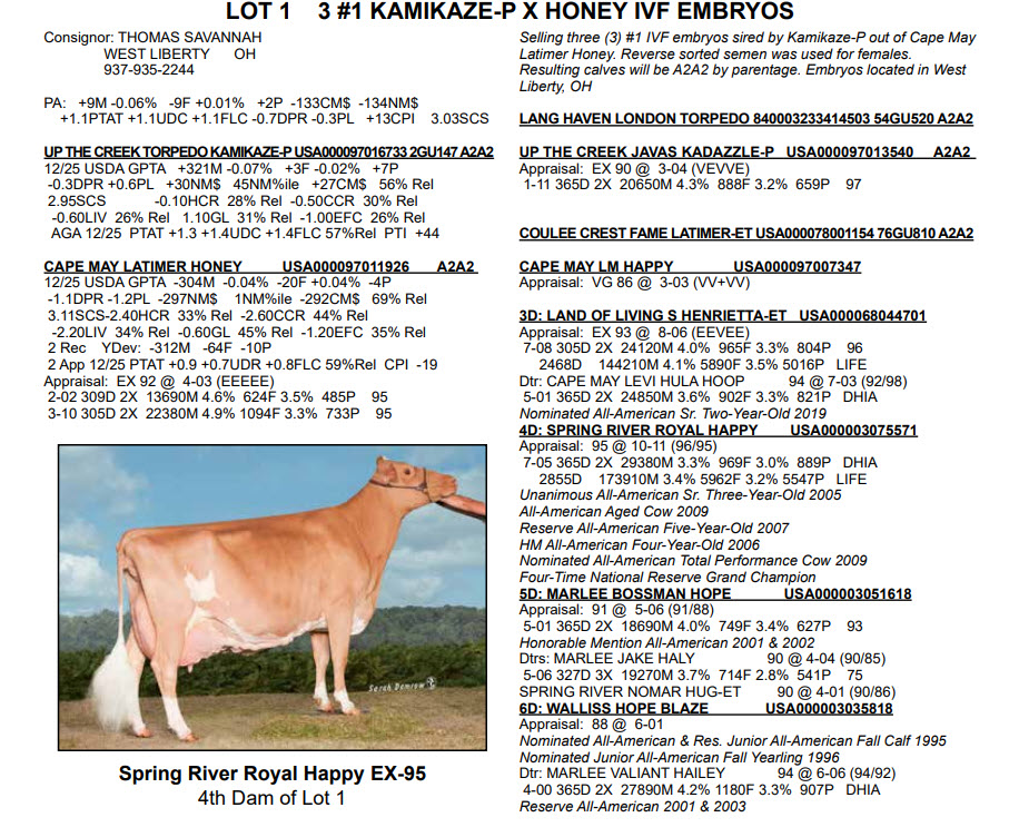 Selling three (3) #1 IVF embryos sired by Kamikaze-P out of Cape May