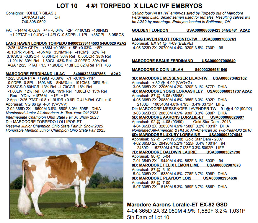 Selling four (4) #1 IVF embryos sired by Torpedo out of Marodore