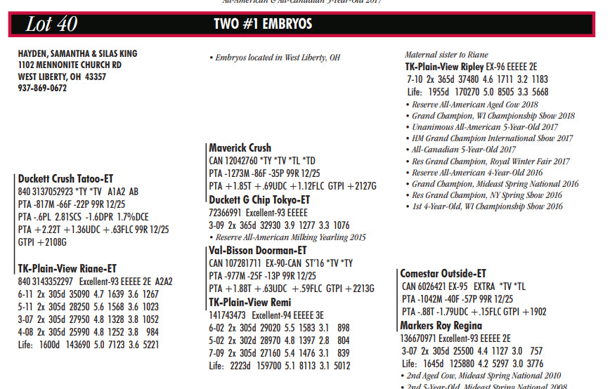 Buckeye Classic Online Exclusive Embryo & Semen Sale
