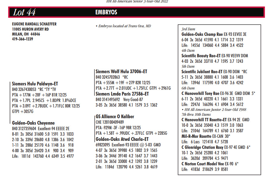 Buckeye Classic Online Exclusive Embryo & Semen Sale