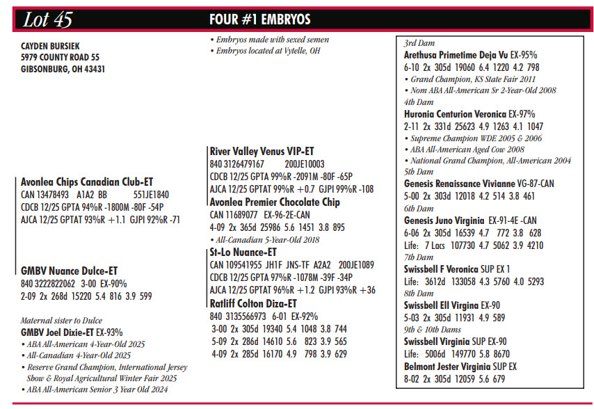 Buckeye Classic Online Exclusive Embryo & Semen Sale