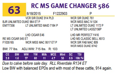 Low BW with balanced EPDs and with most of these cattle, 914 again.