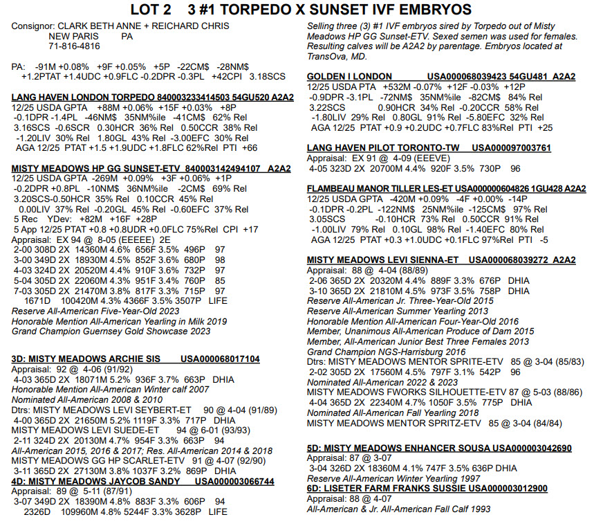 Selling three (3) #1 IVF embryos sired by PRESCOTT out of Misty