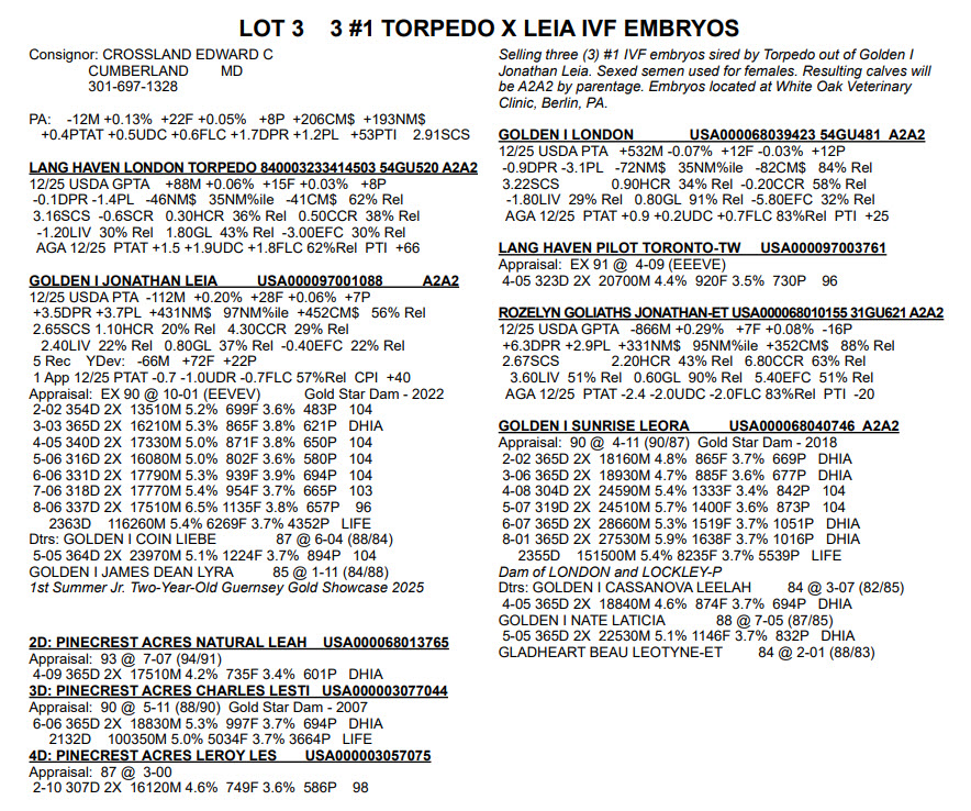 Selling three (3) #1 IVF embryos sired by Torpedo out of Golden I
