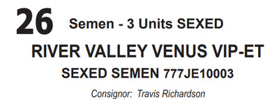 RIVER VALLEY VENUS VIP-ET SEXED SEMEN 777JE10003