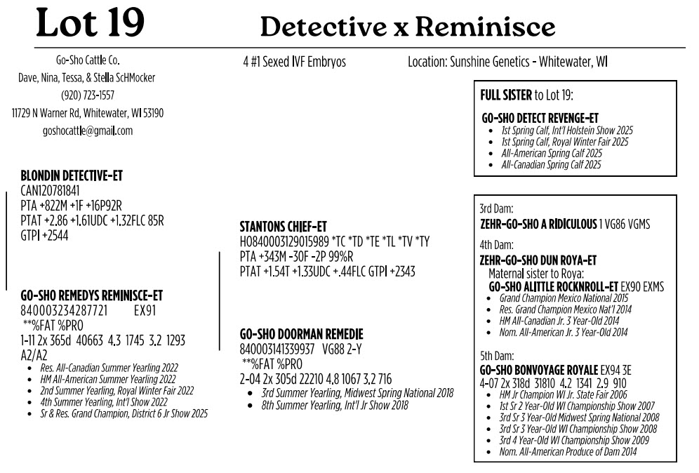 4#1SexedIVFEmbryos Location:SunshineGenetics - Whitewater, WI