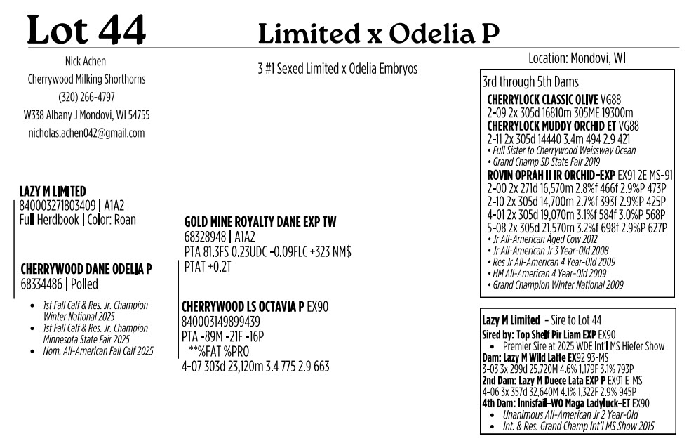 3#1SexedLimitedx OdeliaEmbryos Location: Mondovi, WI