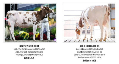 -Selling price is per Embryo or straw -Buyer is responsible for all costs of shipping expenses. This auction will utilize an auto-extend, soft closing closing. With this feature, the bidding will close on ALL lots at the same time (Race Horse Style) Bidding will start to close from 12 pm to 12:02 if any lots receive a bid after 12:01 they will extend bidding on all lots for an additional 2 minutes. Once 1 minute has lapsed without any bidding activity, then all lots will close.