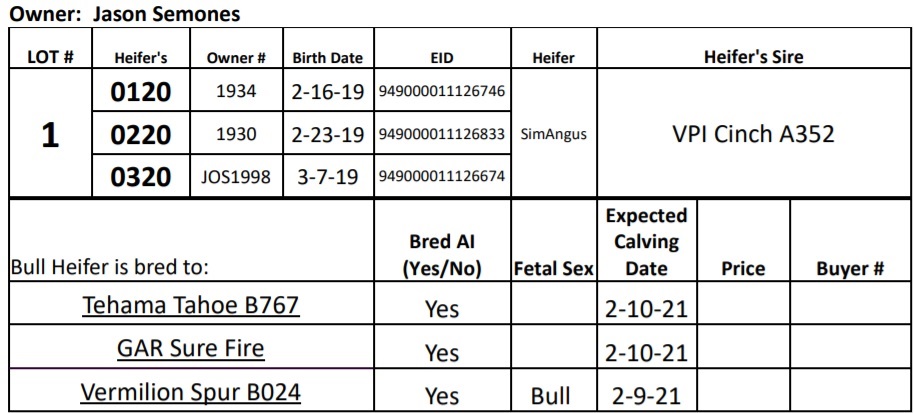 JOS1998 3-7-19 949000011126674 SimAngus VPI Cinch A352 Vermilion Spur B024 Yes Bull 2-9-21