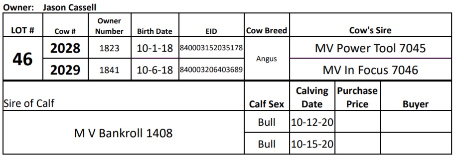 1841 10-6-18 840003206403689 Angus MV In Focus 7046 CALF: M V Bankroll 1408 Bull 10-15-20