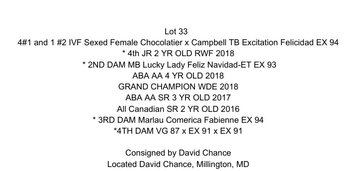 4#1 and 1 #2 IVF Sexed Female Chocolatier x Campbell TB Excitation Felicidad EX 94