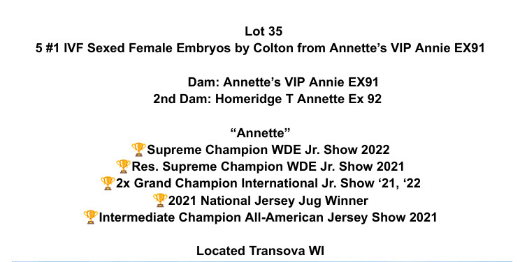5 #1 IVF Sexed Female Embryos by Colton from Annette’s VIP Annie EX91