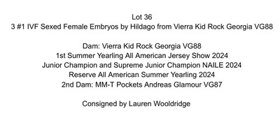 3 #1 IVF Sexed Female Embryos by Hildago from Vierra Kid Rock Georgia VG88