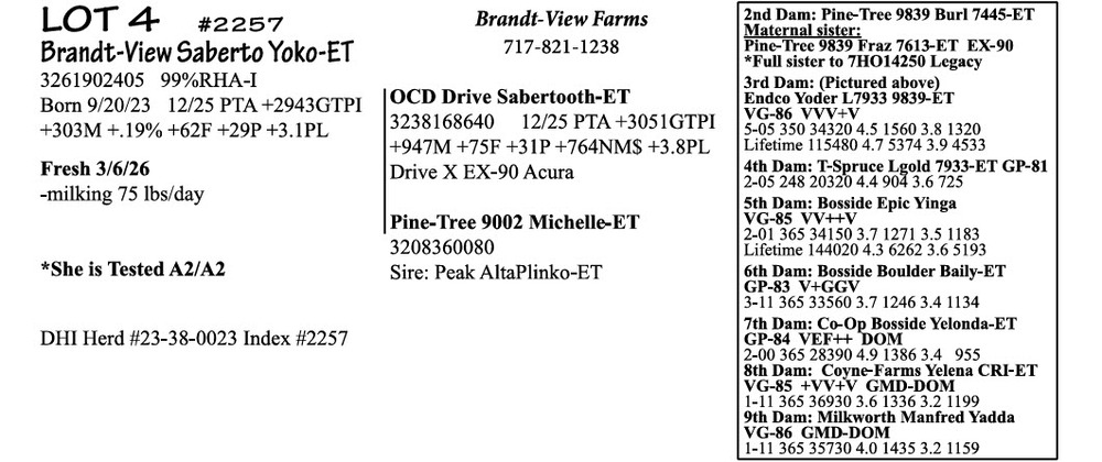 BRUBACKER'S MARCH Monthly Production Sale