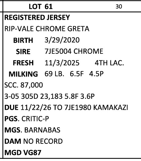 BRUBACKER'S MARCH Monthly Production Sale