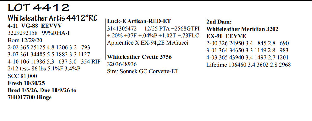 Fresh 10/30/25 Bred 1/5/26, Due 10/9/26 to