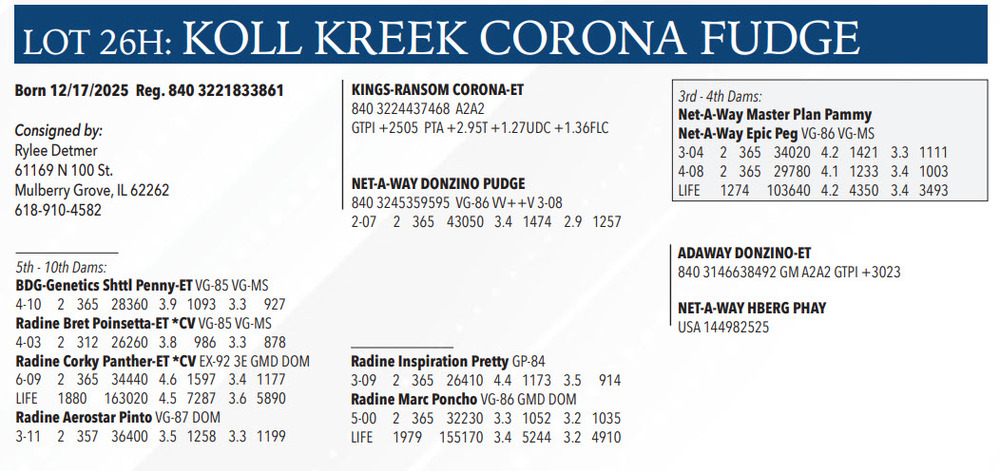 SALE ORDER: Brown Swiss, Guernsey, Jersey, Ayrshire, Milking Shorthorn, Holstein