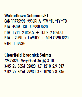 72825907 Good-78 @ 3-03 Born: May 10, 2017 HM#: 630 2-03 2x 365d 28220 4.4 1255 3.0 858 Fresh: October 18, 2020