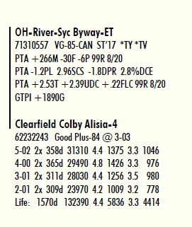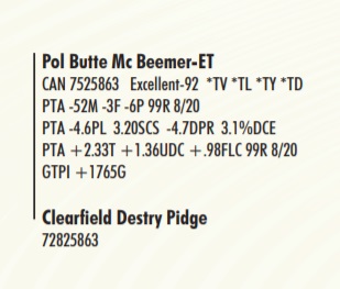Bred: June 7, 2020 to OH-River-Syc Crushabull-ET 200HO11127 840 3126918401 99%RHA Born: December 2, 2014 4-00 2x 331d 28550 4.6 1303 3.7 1049 2-01 2x 365d 27190 4.7 1283 3.8 1029 5-00 2x 315d 29650 4.3 1268 3.4 1014 Milking 29# 4.5% 3.1p SCC: 230
