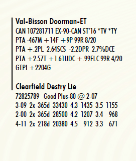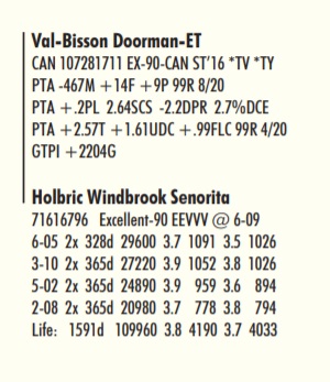 72825834 Very Good-86 VG-MS @ 3-07 Born: April 17, 2015 HM#: 557 4-02 2x 365d 37530 4.0 1485 3.2 1207 3-01 2x 351d 30660 4.2 1302 3.2 980 1-11 2x 365d 29110 4.1 1199 3.2 919 Bred: February 25, 2020 to KH Cinderdoor-ET 200HO7850