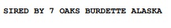 SIRED BY 7 OAKS BURDETTE ALASKA