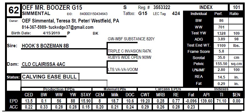 SIMMENTAL EID:840003150434643 Tattoo: G15 LEC Tag 424