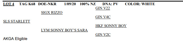 TAG K68 DOE-NKR 1/09/20 100% NZ DNA: PV COLOR: WHITE