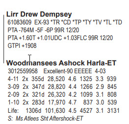 Woodmansee Top 100 Sale 319 Rt 165, Preston CT, 06365 Premier Holstein Offering Contact Agent: Chad Griffith 513-543-2315 Catalog | Terms of Auction Download CATALOG Download UPDATES Download SALE ORDER Download ADDED LOT Download ADDED LOT Catalog | Terms Download CATALOG Download UPDATES Download SALE ORDER Download ADDED LOT Download ADDED LOT All Items (148) Cattle (145) Embryos (3) Categories All Items (148) Cattle (145) Embryos (3) Search Item #: Keyword: Search Catalog Item #: Keyword: 20 items per page 50 items per page 100 items per page Go to page #: 1 , 2 , 3 , 4 , 5 , 6 #1 – WOODMANSEES DRMN HAVOC-ET 840003144028250 Born September 3, 2017 99%RHA-I Donor Dam H.N. 222 Excellent-90 VEVVE 3-02 2-01 2x 274d 18,040 4.8 866 3.1 555 3-00 2x 177d 15,347 4.6 707 3.2 485 RIP March test: 84 lbs. 5.7f 3.5p SCC 3.4 2-01 records SCC 2.3 resh: September 13, 2020 Due 11/07/21 to Avant-Garde Unix Select-ET 7HO14920 Location: 319 Rt 165, Preston CT, 06365 Contact Agent: Chad Griffith 513-543-2315 More Info / Bid Now Track this Item Sold High Bid: $11,200.00 – #354 #1 – WOODMANSEES DRMN HAVOC-ET Sold High Bid: $11,200 More Details More Info / Bid Track Item 840003144028250 Born September 3, 2017 99%RHA-I Donor Dam H.N. 222 Excellent-90 VEVVE 3-02 2-01 2x 274d 18,040 4.8 866 3.1 555 3-00 2x 177d 15,347 4.6 707 3.2 485 RIP March test: 84 lbs. 5.7f 3.5p SCC 3.4 2-01 records SCC 2.3 resh: September 13, 2020 Due 11/07/21 to Avant-Garde Unix Select-ET 7HO14920 Location: 319 Rt 165, Preston CT, 06365 Contact Agent: Chad Griffith 513-543-2315 #2 – EMBRYOS- SUMMERFEST, DOORMAN X HATTY FIVE #1 IVF EMBRYOS (3) #1 IVF reverse sorted embryos by Summerfest (2) #1 IVF reverse sorted embryos by Doorman Lots 2, 3 & 4: Embryos are stored at Woodmansee Farms and available for pick up at farm. Any shipping cost will be that of the buyer. Embryos are NOT globally qualified for export Location: 319 Rt 165, Preston CT, 06365 Contact Agent: Chad Griffith 513-543-2315 More Info / Bid Now Track this Item Sold High Bid: $1,025.00 – #362 Auction Type: Quantity x Price Quantity: 5 #2 – EMBRYOS- SUMMERFEST, DOORMAN X HATTY Quantity x PriceQuantity: 5 Sold High Bid: $1,025 More Details More Info / Bid Track Item FIVE #1 IVF EMBRYOS (3) #1 IVF reverse sorted embryos by Summerfest (2) #1 IVF reverse sorted embryos by Doorman Lots 2, 3 & 4: Embryos are stored at Woodmansee Farms and available for pick up at farm. Any shipping cost will be that of the buyer. Embryos are NOT globally qualified for export Location: 319 Rt 165, Preston CT, 06365 Contact Agent: Chad Griffith 513-543-2315 #3 – EMBRYOS- SUMMERFEST, UNSTOPABULL X HAVOC SIX #1 IVF EMBRYOS (3) #1 IVF reverse sorted embryos by Summerfest (3) #1 IVF reverse sorted embryos by Unstopabul Lots 2, 3 & 4: Embryos are stored at Woodmansee Farms and available for pick up at farm. Any shipping cost will be that of the buyer. Embryos are NOT globally qualified for export Location: 319 Rt 165, Preston CT, 06365 Contact Agent: Chad Griffith 513-543-2315 More Info / Bid Now Track this Item Sold High Bid: $525.00 – #1035 Auction Type: Quantity x Price Quantity: 6 #3 – EMBRYOS- SUMMERFEST, UNSTOPABULL X HAVOC Quantity x PriceQuantity: 6 Sold High Bid: $525 More Details More Info / Bid Track Item SIX #1 IVF EMBRYOS (3) #1 IVF reverse sorted embryos by Summerfest (3) #1 IVF reverse sorted embryos by Unstopabul Lots 2, 3 & 4: Embryos are stored at Woodmansee Farms and available for pick up at farm. Any shipping cost will be that of the buyer. Embryos are NOT globally qualified for export Location: 319 Rt 165, Preston CT, 06365 Contact Agent: Chad Griffith 513-543-2315 #4 – EMBRYOS- UNSTOPABULL X HAVOC SIX #1 IVF EMBRYOS (4) #1 IVF reverse sorted embryos by Unstopabull (2) #2 IVF reverse sorted embryos by Unstopabull Lots 2, 3 & 4: Embryos are stored at Woodmansee Farms and available for pick up at farm. Any shipping cost will be that of the buyer. Embryos are NOT globally qualified for export Location: 319 Rt 165, Preston CT, 06365 Contact Agent: Chad Griffith 513-543-2315 More Info / Bid Now Track this Item Sold High Bid: $500.00 – #1078 Auction Type: Quantity x Price Quantity: 6 #4 – EMBRYOS- UNSTOPABULL X HAVOC Quantity x PriceQuantity: 6 Sold High Bid: $500 More Details More Info / Bid Track Item SIX #1 IVF EMBRYOS (4) #1 IVF reverse sorted embryos by Unstopabull (2) #2 IVF reverse sorted embryos by Unstopabull Lots 2, 3 & 4: Embryos are stored at Woodmansee Farms and available for pick up at farm. Any shipping cost will be that of the buyer. Embryos are NOT globally qualified for export Location: 319 Rt 165, Preston CT, 06365 Contact Agent: Chad Griffith 513-543-2315 #5 – VAILWOOD GCHIP HAVA 840003207027805 99%RHA-I Born October 19, 2019 H.N. 454 Location: 319 Rt 165, Preston CT, 06365 Contact Agent: Chad Griffith 513-543-2315 More Info / Bid Now Track this Item Sold High Bid: $2,500.00 – #385 #5 – VAILWOOD GCHIP HAVA Sold High Bid: $2,500 More Details More Info / Bid Track Item 840003207027805 99%RHA-I Born October 19, 2019 H.N. 454 Location: 319 Rt 165, Preston CT, 06365 Contact Agent: Chad Griffith 513-543-2315 #6 – VAILWOOD SDK HARRIER 840003127012246 99%RHA-I Born September 13, 2020 H.N. 544 Location: 319 Rt 165, Preston CT, 06365 Contact Agent: Chad Griffith 513-543-2315 More Info / Bid Now Track this Item Sold High Bid: $3,000.00 – #1087 #6 – VAILWOOD SDK HARRIER Sold High Bid: $3,000 More Details More Info / Bid Track Item 840003127012246 99%RHA-I Born September 13, 2020 H.N. 544 Location: 319 Rt 165, Preston CT, 06365 Contact Agent: Chad Griffith 513-543-2315 #7 – WOODMANSEES DBACK HADY-ET 840003144028276 99%RHA-I Born September 22, 2017 H.N. 248 Very Good-87 VVVVV 2-09 2-05 2x 354d 22,023 5.0 1095 3.4 747 RIP Fresh 3/1/20; Due 5/16/21 to Farnear-BH 1st Grade-ET 151HO3239 Location: 319 Rt 165, Preston CT, 06365 Contact Agent: Chad Griffith 513-543-2315 More Info / Bid Now Track this Item Sold High Bid: $5,200.00 – #1111 #7 – WOODMANSEE