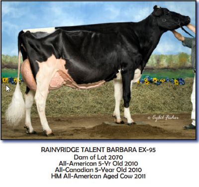 100%RHA RC TL TD Born: April 3, 2013 EX-93-2E EEVEE 5-08 305 3X 32,730 4.0 1301 3.0 987 3-03 365 2X 21,730 3.7 808 3.0 659 7-10 97 2X 9,907 4.0 395 3.0 297 RIP 4th Aged Cow, Southern Spring National 2019 March test: 103 lbs SCC: 303,000 Bred March 11, 2021 to Val-Bisson Doorman-ET C 107281711 (sexed)